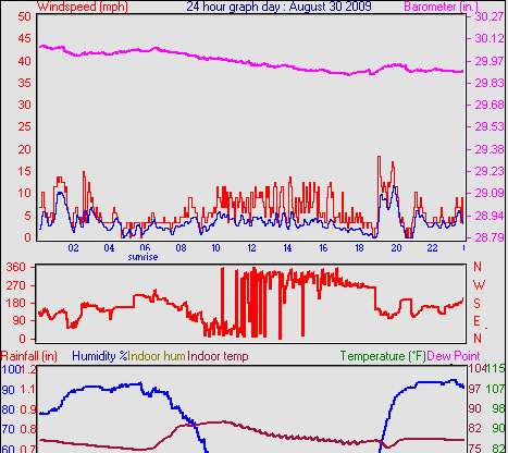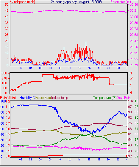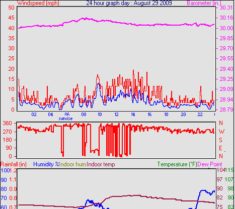 Maximum windspeed = 15.0 mph on day 29 at time 09:59