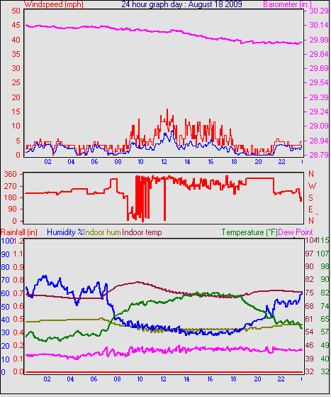 Maximum gust speed = 18 mph from 113 °(ESE) on day 30 at time 19:19
