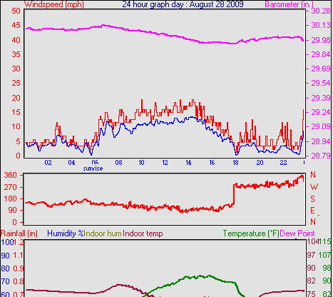 Maximum windspeed = 15.0 mph on day 28 at time 15:29