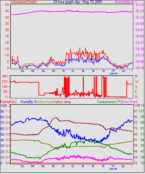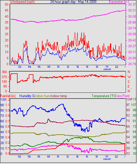 Maximum gust speed = 18 mph from 338 °(NNW) on day 30 at time 14:31