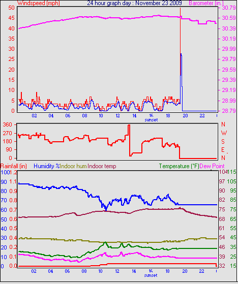 Maximum pressure = 30.64 in. on day 23 at time 17:06