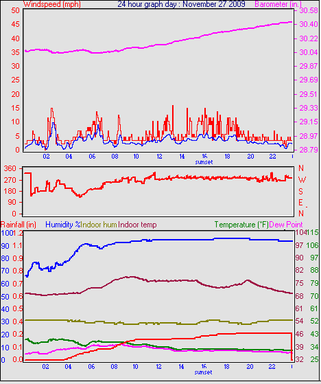 Maximum rain per minute = 0.010 in on day 27 at time 16:37