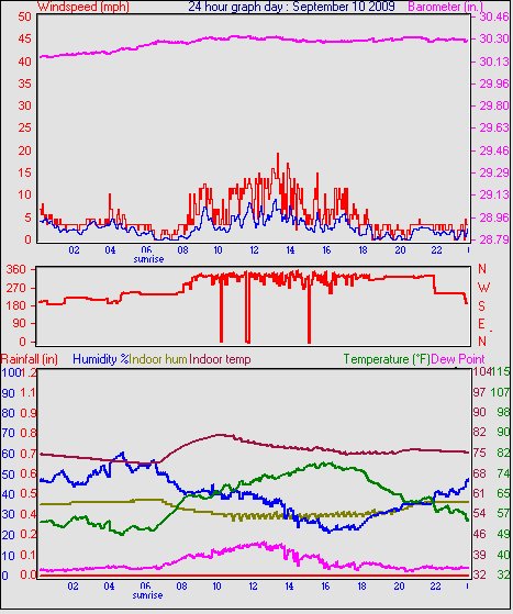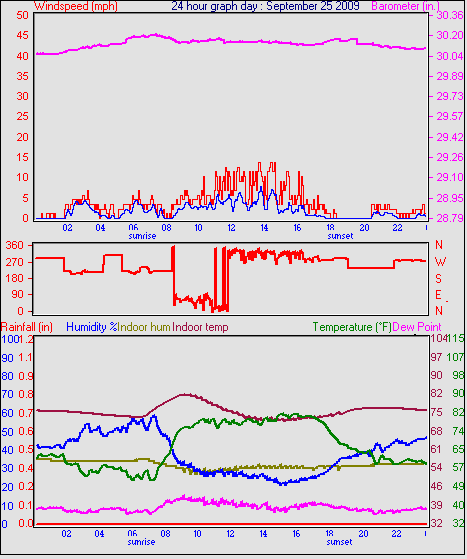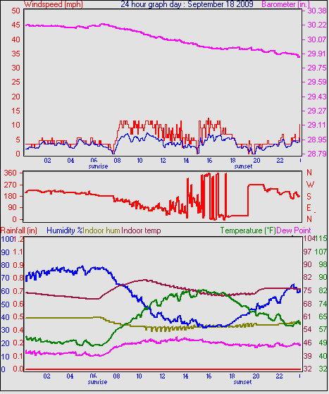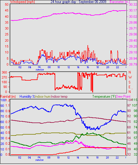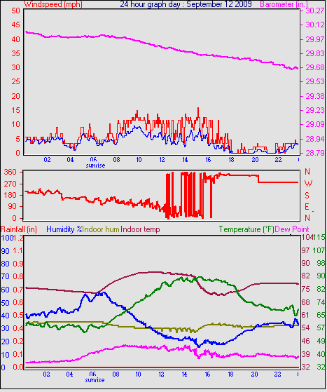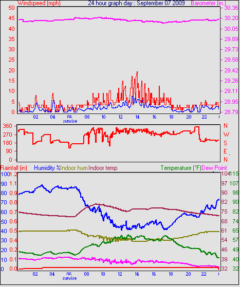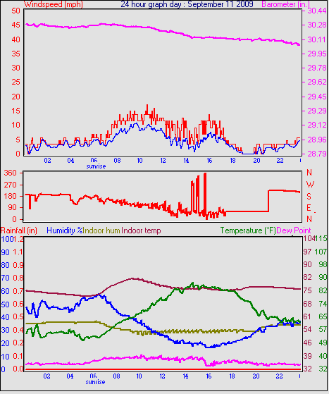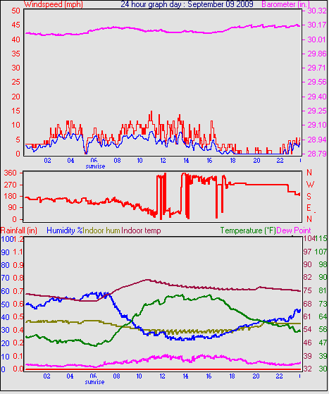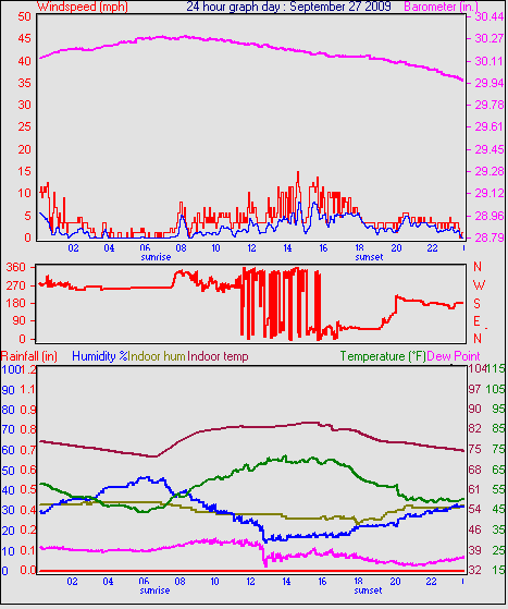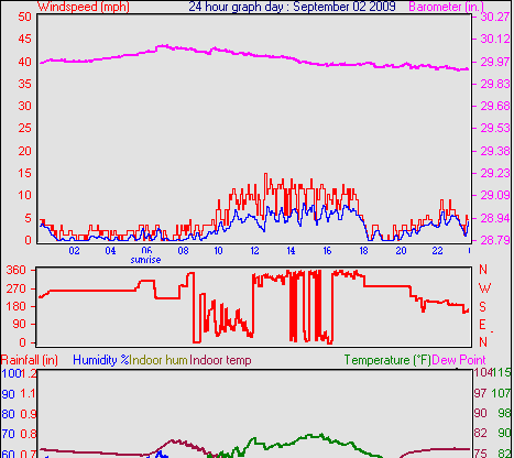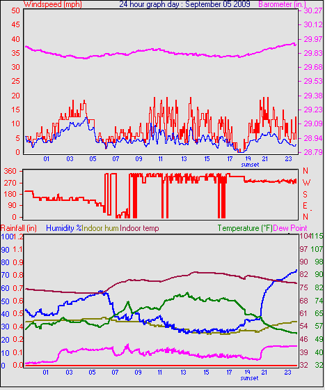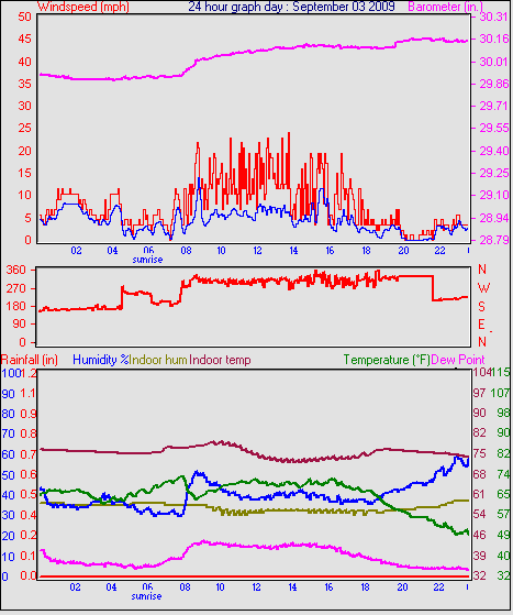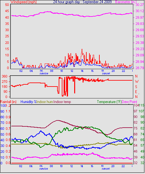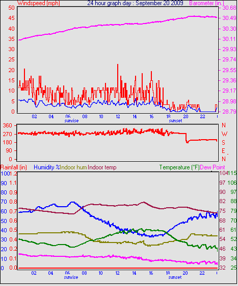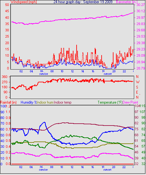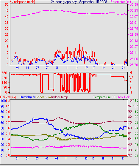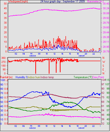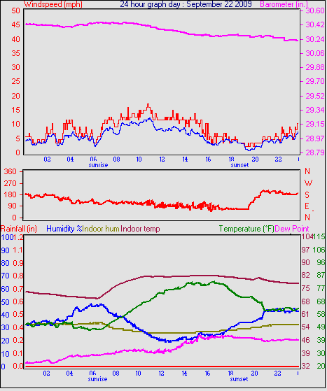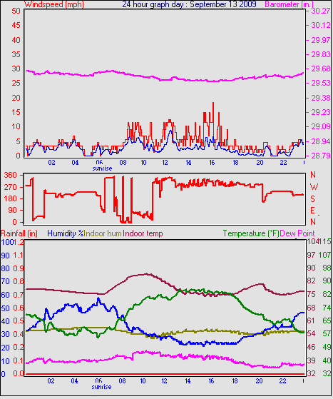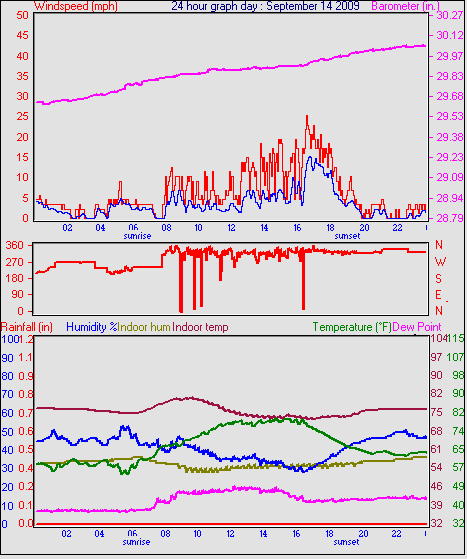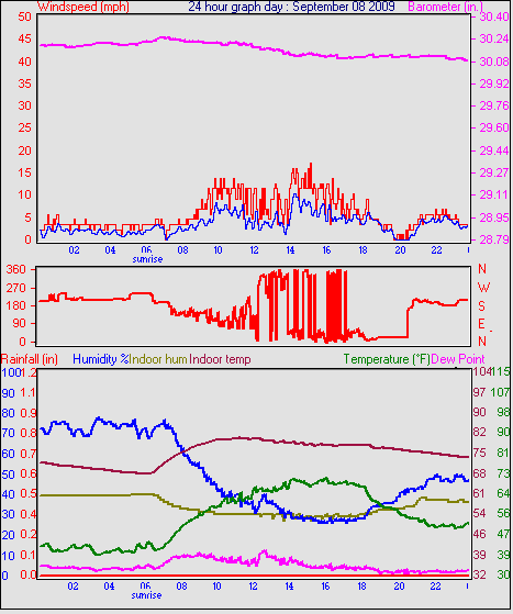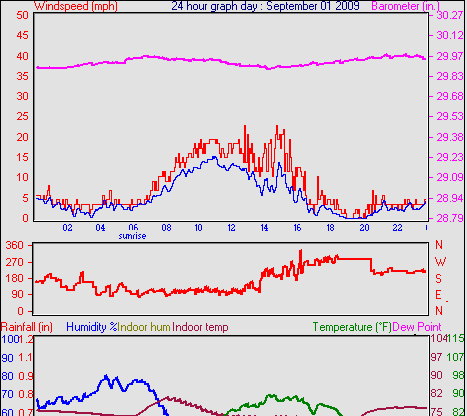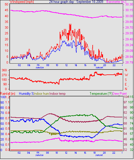 Maximum windspeed = 23.0 mph from 180°( S ) on day 16 at time 11:48
