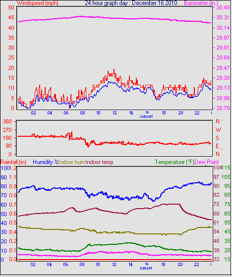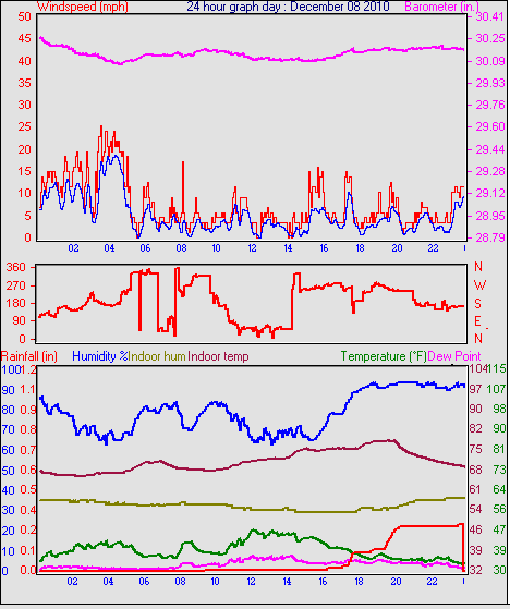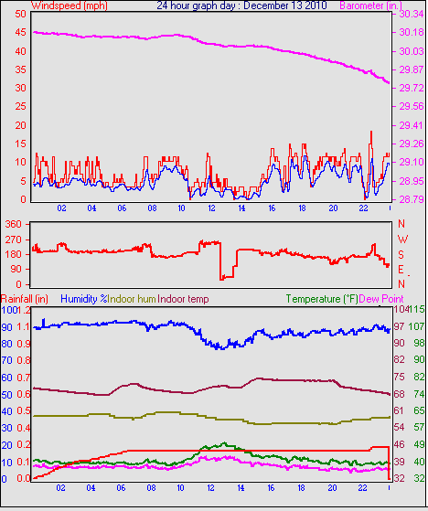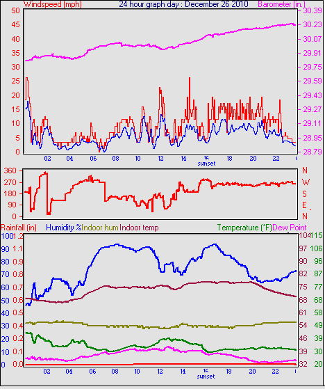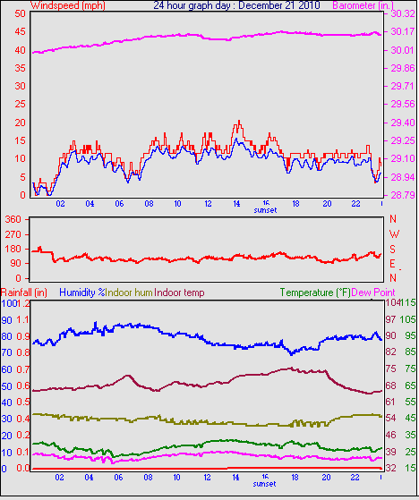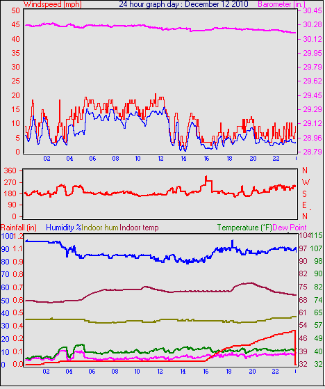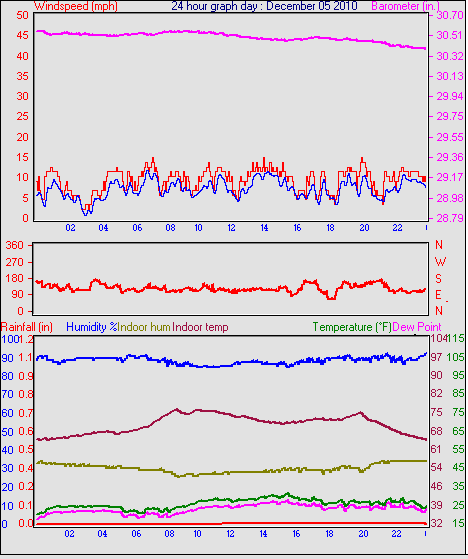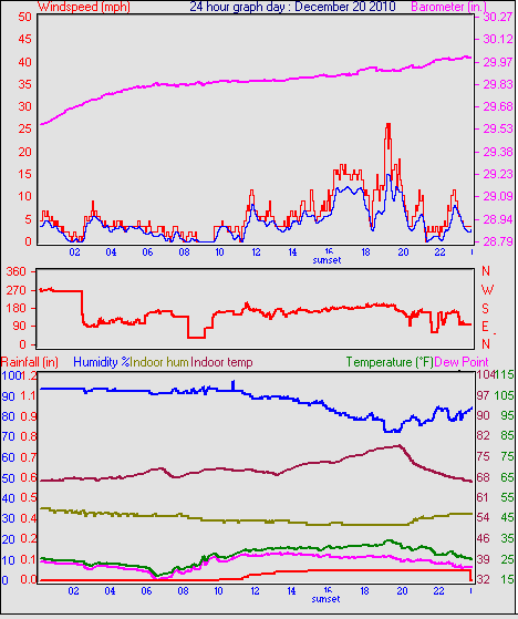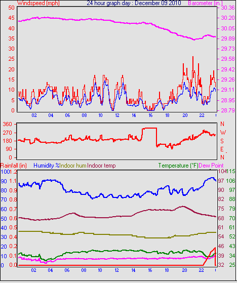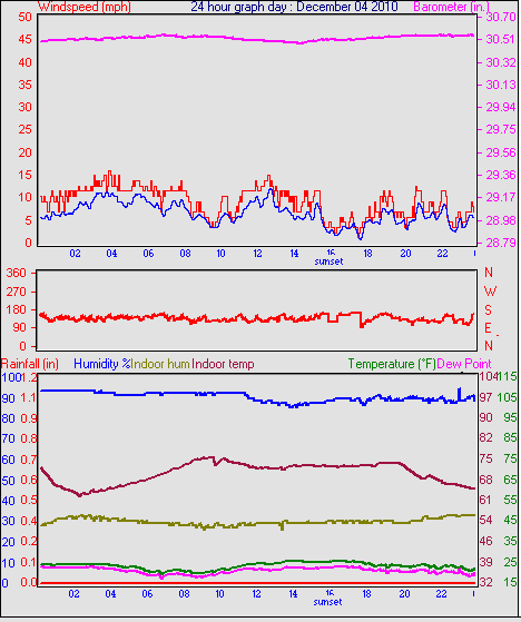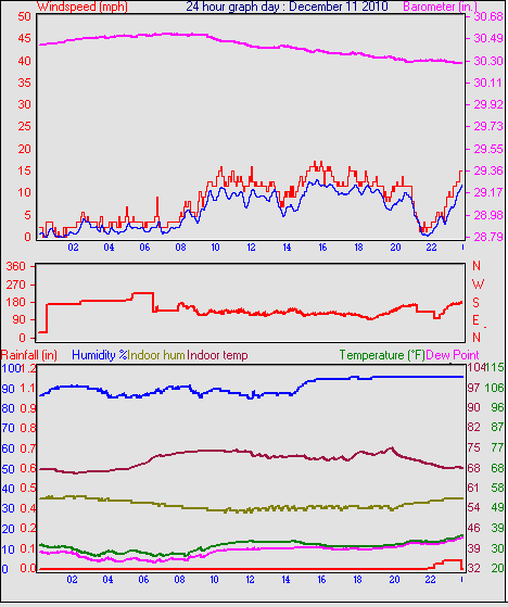 Maximum windspeed = 10.4 mph on day 01 at time 23:32