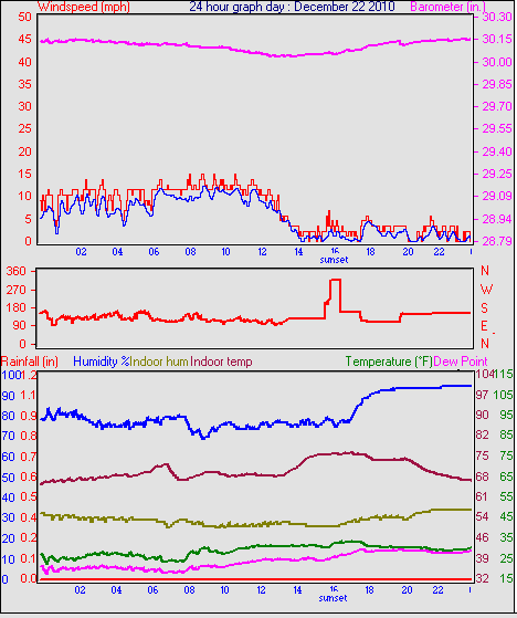 Maximum pressure = 30.279 in. on day 30 at time 22:07