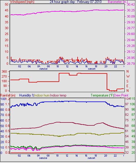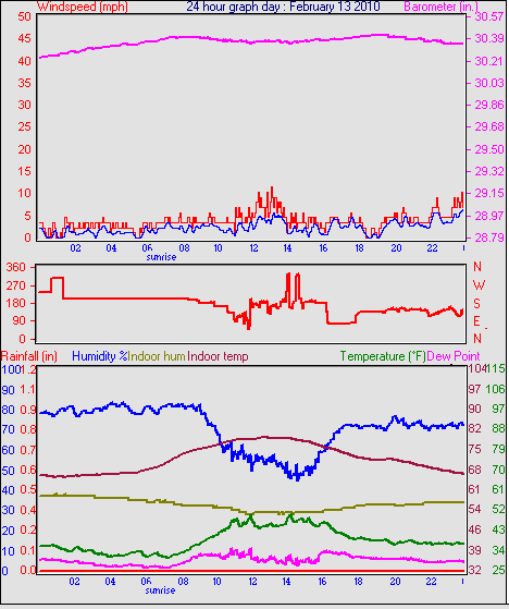 Maximum windspeed = 13.8 mph on day 04 at time 07:51