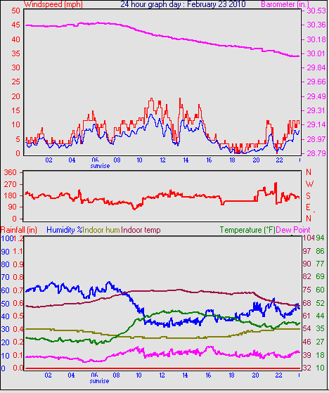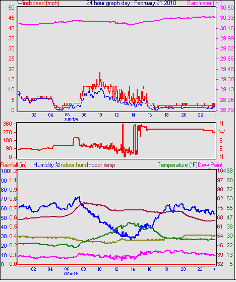 Maximum windspeed = 20.7 mph from 180°( S ) on day 10 at time 10:34