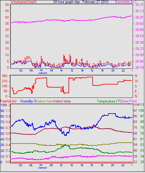 Minimum temperature = 38.4°F on day 27 at time 19:30