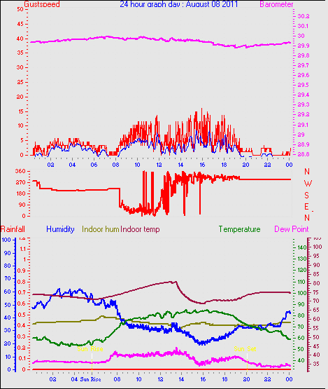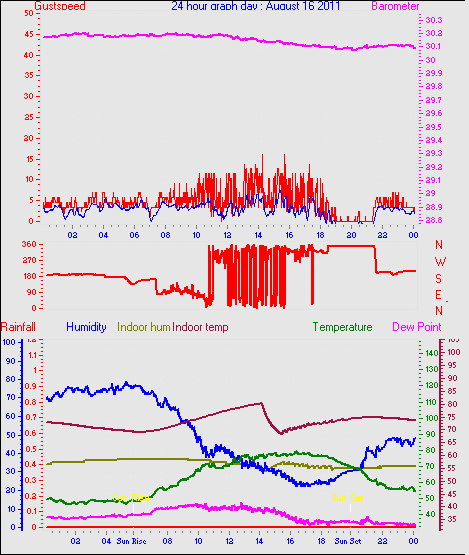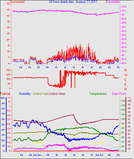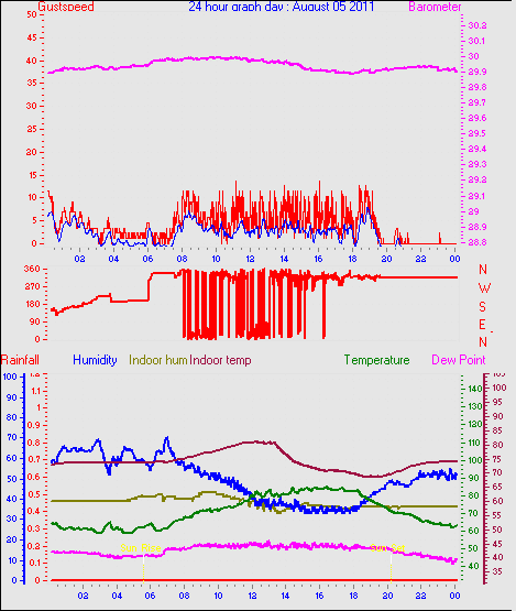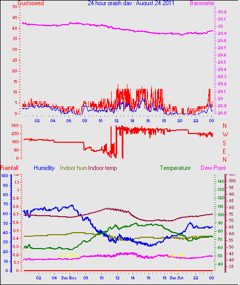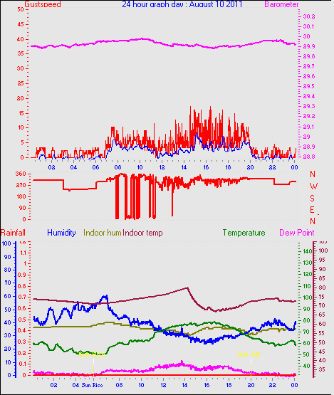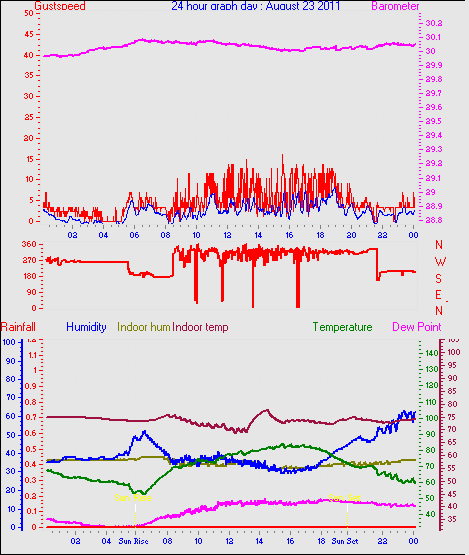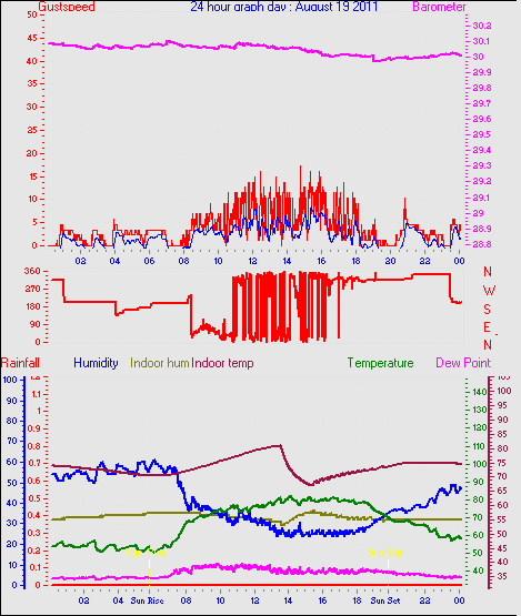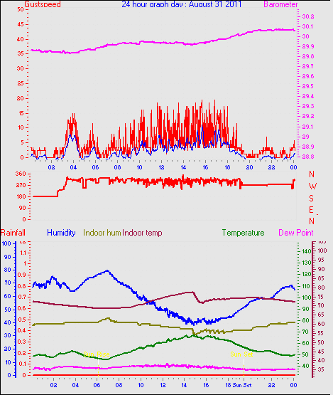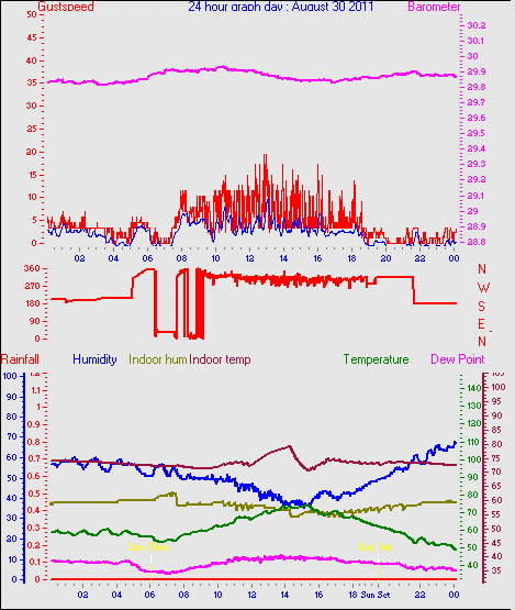 Maximum windspeed = 19.6 mph from 068°(ENE) on day 29 at time 04:55
