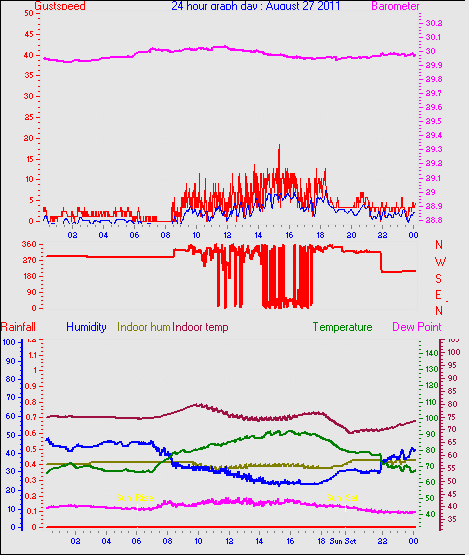 Maximum windspeed = 19.6 mph on day 29 at time 04:55