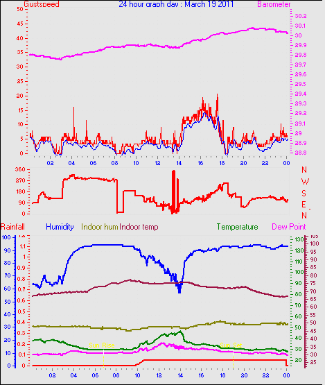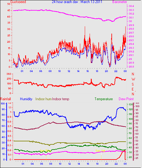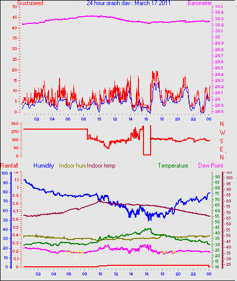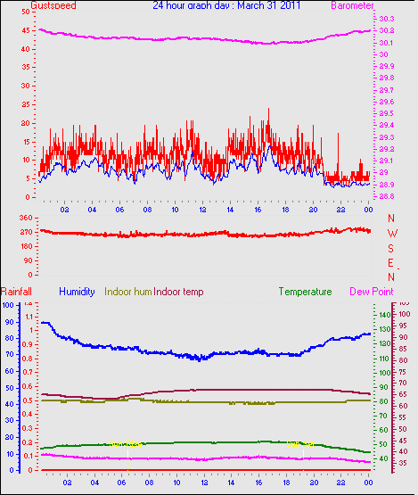 Maximum windspeed = 17.3 mph on day 31 at time 16:46