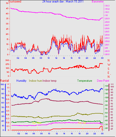 Maximum windspeed = 15.0 mph on day 30 at time 12:36
