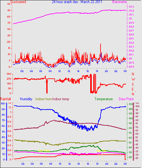 Maximum gust speed = 21.9 mph from 248 °(WSW) on day 30 at time 13:59