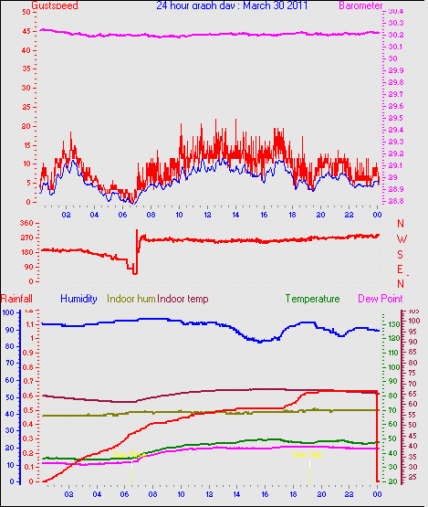 Maximum rain per minute = 0.010 in on day 30 at time 18:25