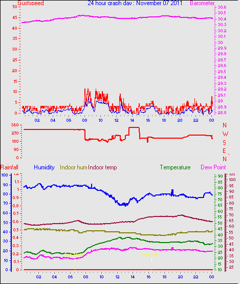 Maximum gust speed = 12.7 mph from 315 °( NW) on day 30 at time 13:07