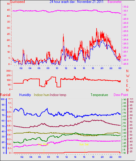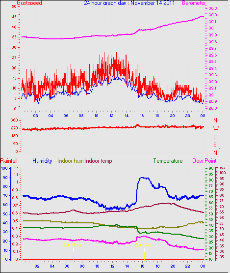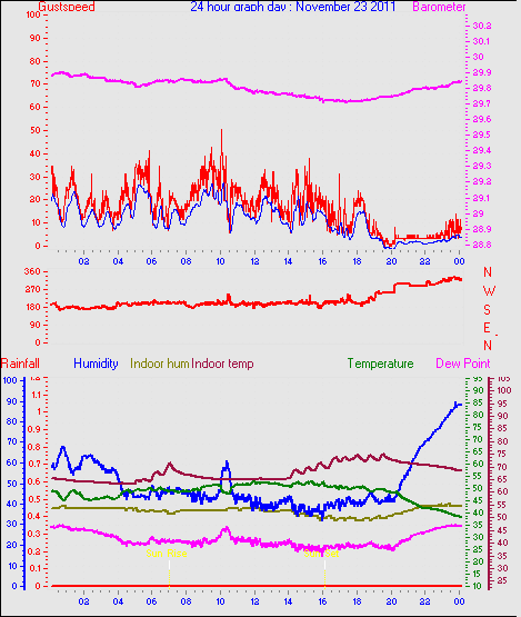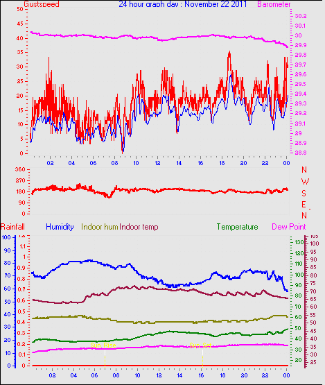 Maximum windspeed = 34.5 mph from 203°(SSW) on day 23 at time 10:07