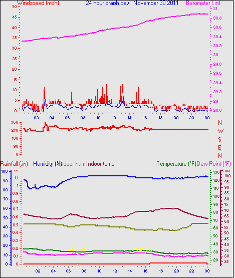 Maximum rain per minute = 0.01 in. on day 30 at time 16:32