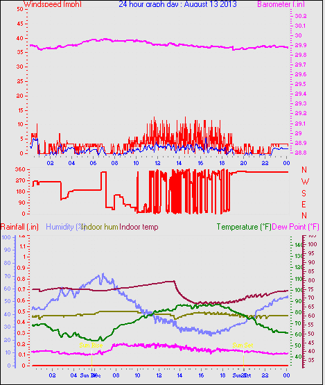 Maximum windspeed = 26.5 mph from 270°( W ) on day 12 at time 18:21