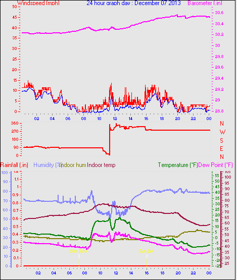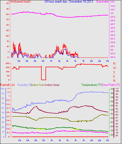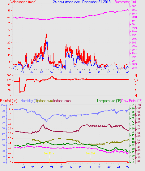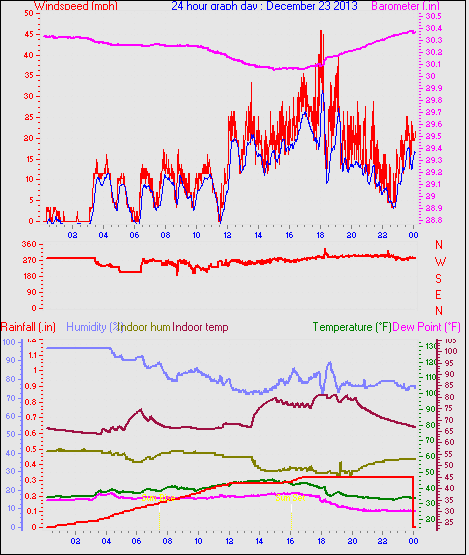 Maximum windspeed = 36.8 mph from 293°(WNW) on day 23 at time 18:02
