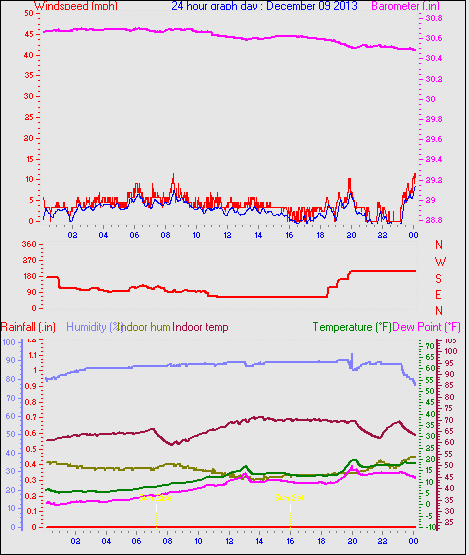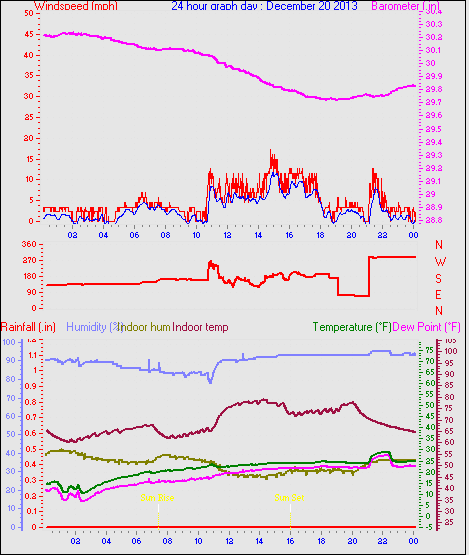 Maximum windspeed = 16.1 mph on day 30 at time 21:15