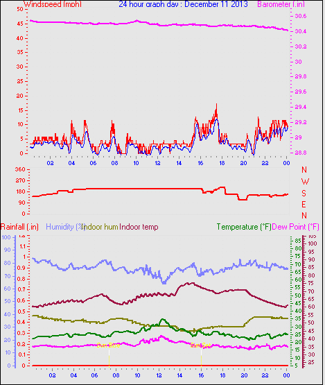 Maximum gust speed = 18.4 mph from 203 °(SSW) on day 30 at time 21:14