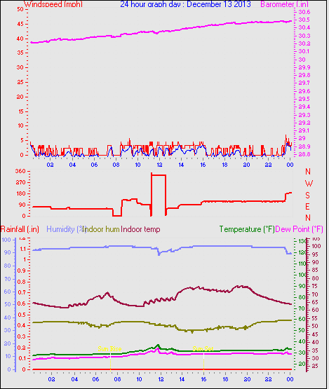 Maximum rain per minute = 0.030 in on day 14 at time 13:09
