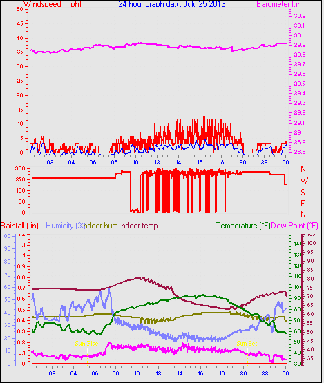 Maximum windspeed = 25.3 mph from 270°( W ) on day 17 at time 01:13