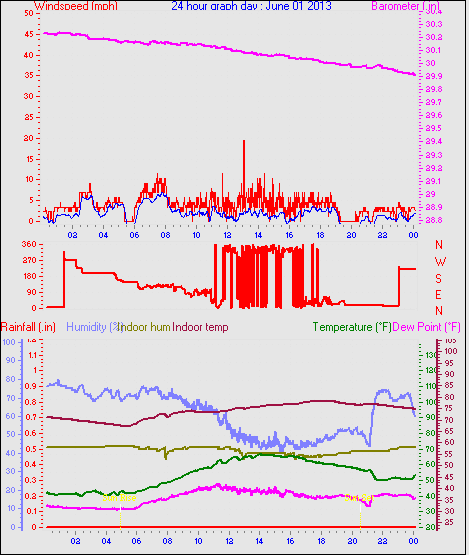 Maximum dewpoint = 71.3°F on day 29 at time 13:24