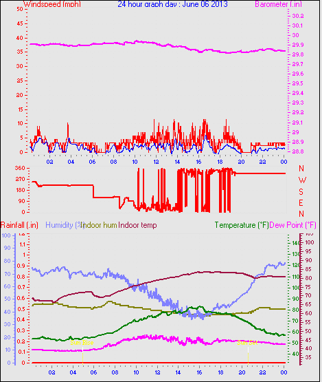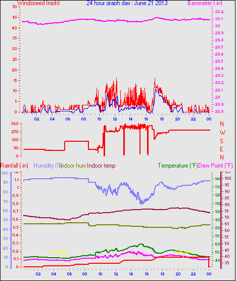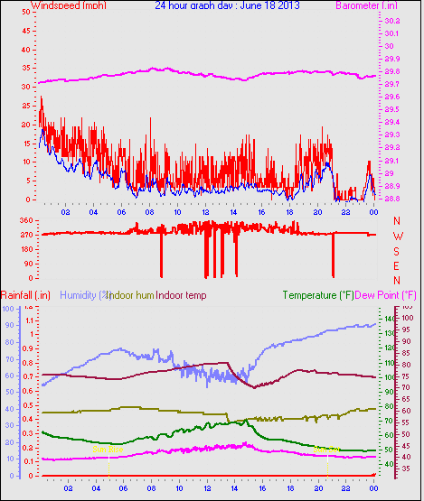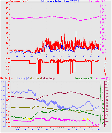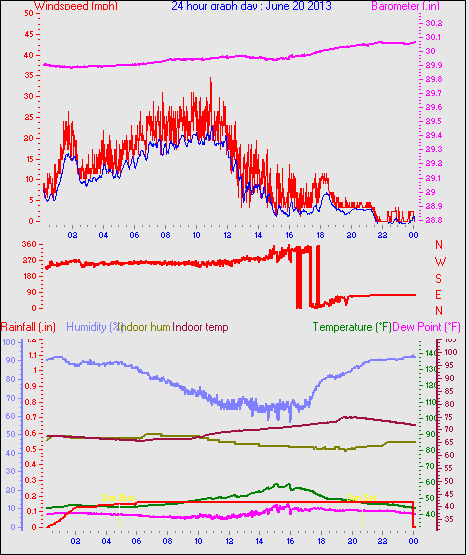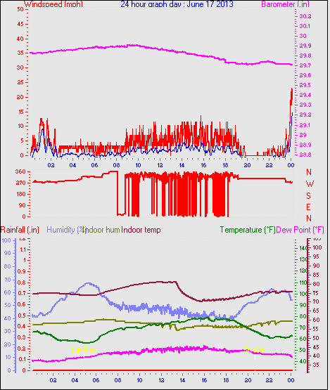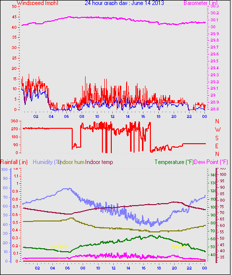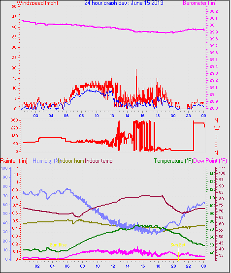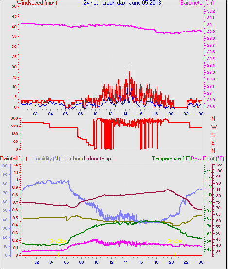 Maximum windspeed = 13.8 mph on day 29 at time 00:17