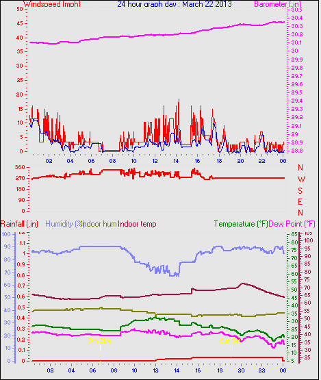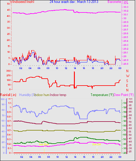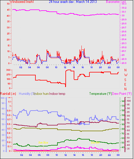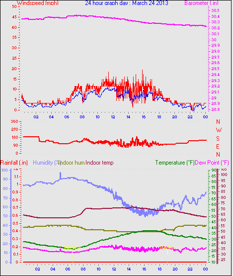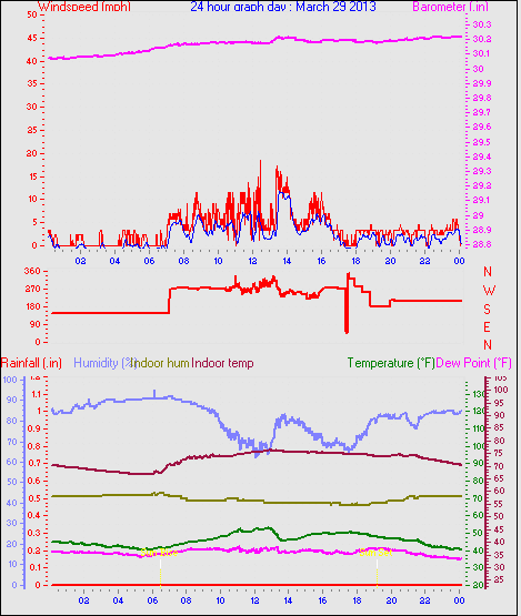 Minimum dewpoint = 29.2°F on day 12 at time 0:22