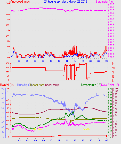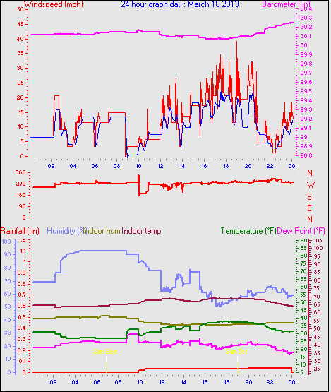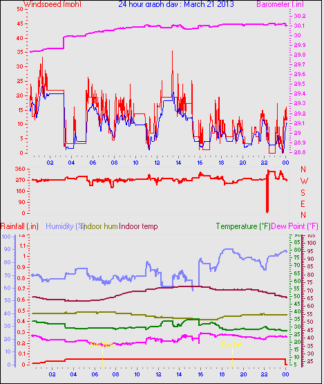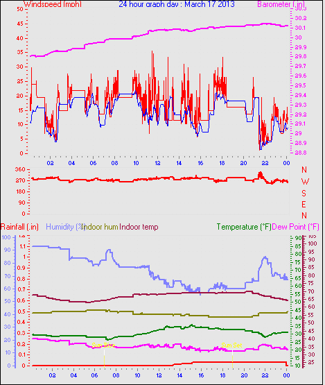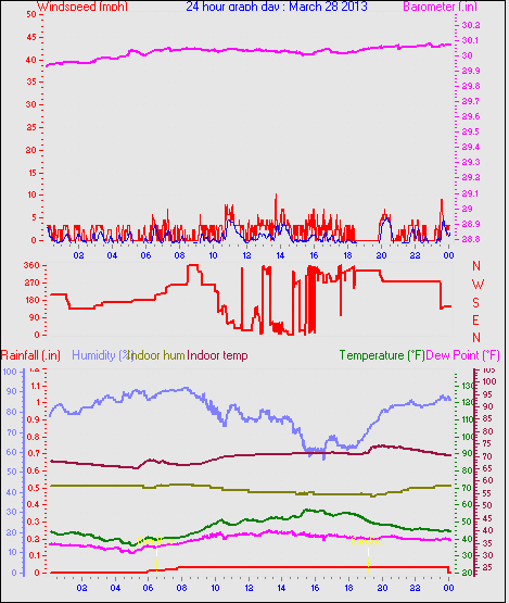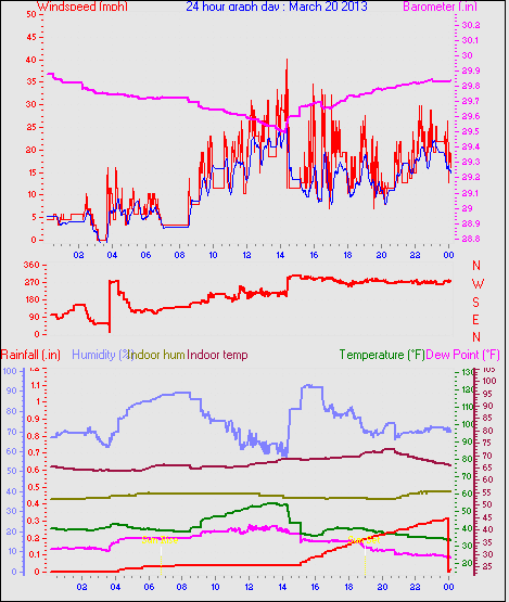 Maximum windspeed = 13.8 mph on day 29 at time 13:39
