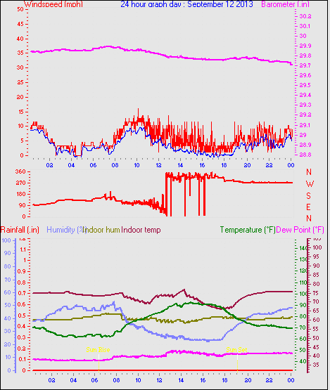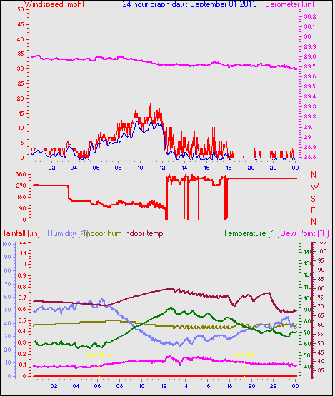 Maximum windspeed = 13.8 mph on day 01 at time 10:58