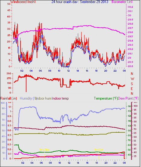 Maximum windspeed = 28.8 mph on day 29 at time 06:13