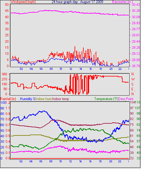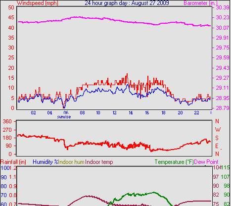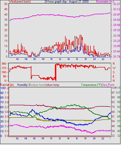 Maximum windspeed = 23.0 mph from 135°( SE) on day 06 at time 04:14