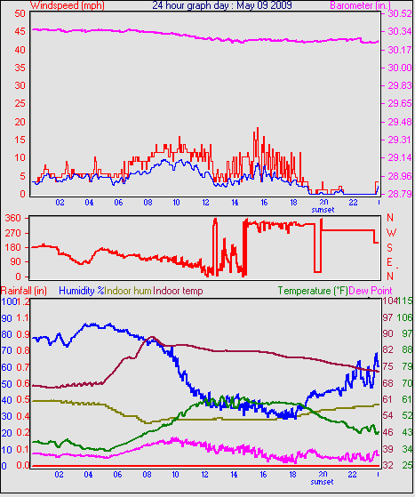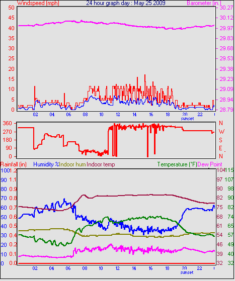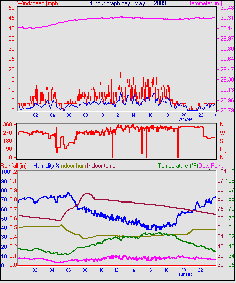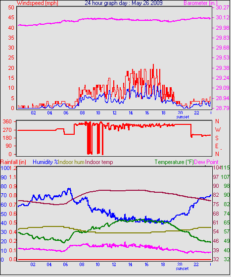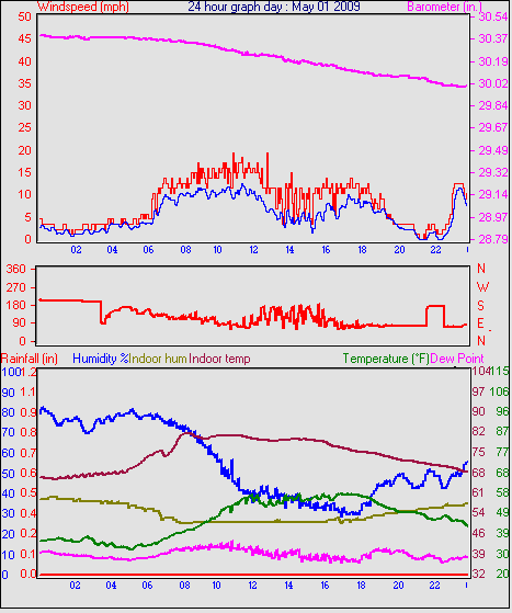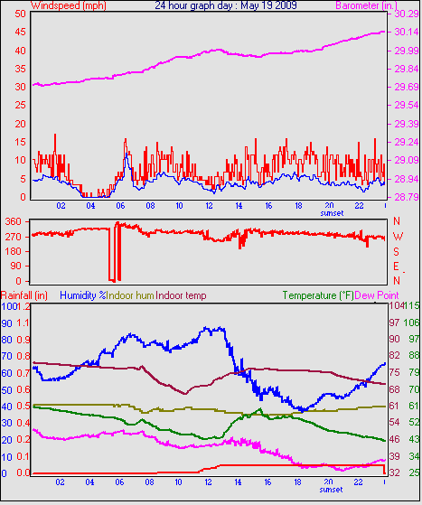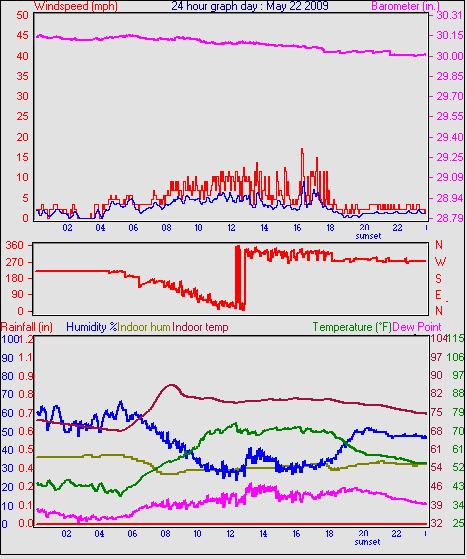Maximum windspeed = 21.9 mph from 180°( S ) on day 04 at time 19:05