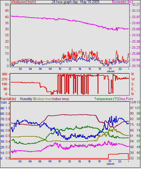 Maximum gust speed = 18 mph from 338 °(NNW) on day 30 at time 14:31