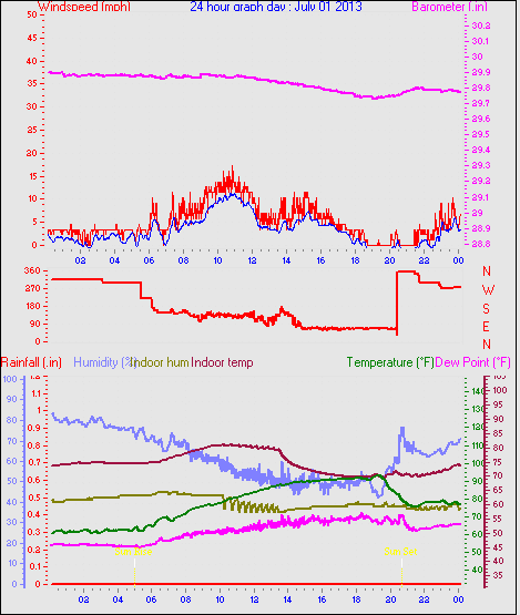 Maximum dewpoint = 72.9°F on day 01 at time 18:20