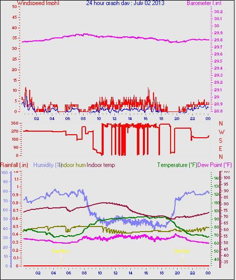 Minimum dewpoint = 34.3°F on day 29 at time 0:01