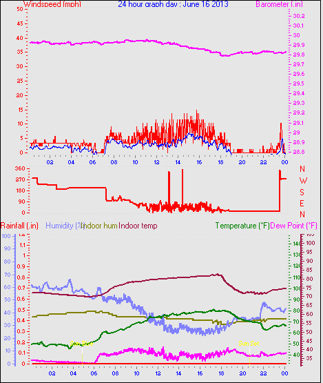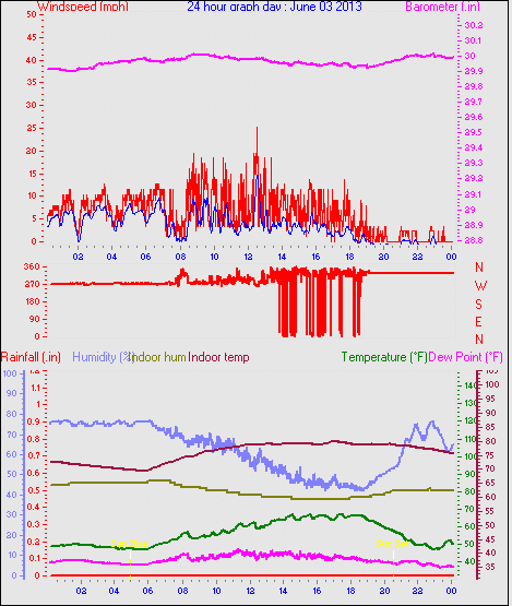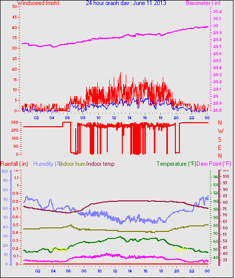 Maximum windspeed = 13.8 mph on day 29 at time 00:17