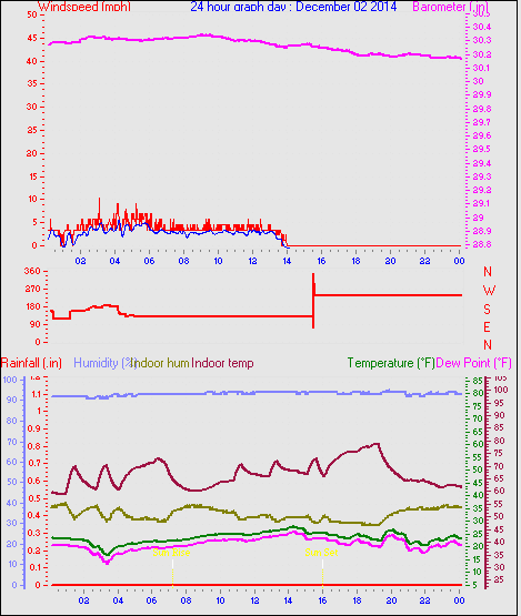 Maximum dewpoint = 26.5°F on day 02 at time 14:14