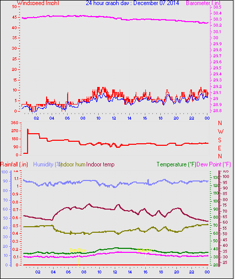 Minimum dewpoint = -9.3°F on day 30 at time 17:59