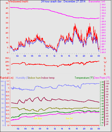 Minimum dewpoint = -0.4°F on day 29 at time 22:33