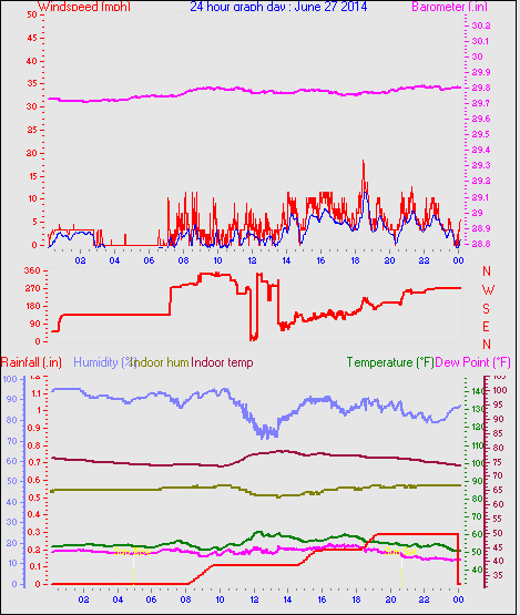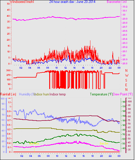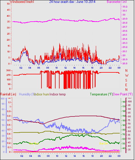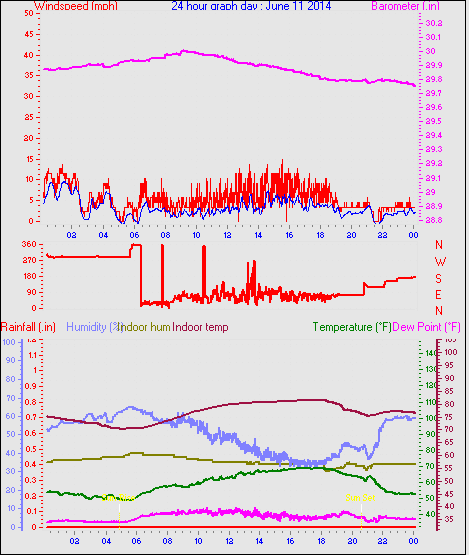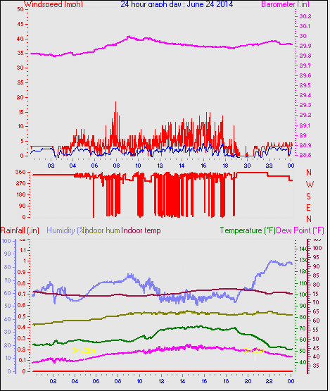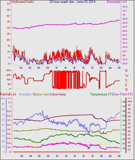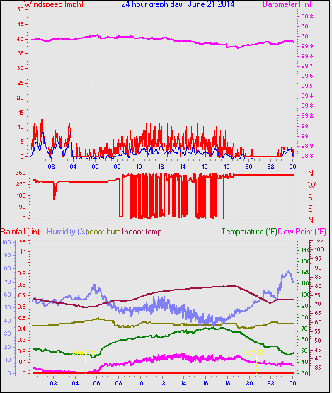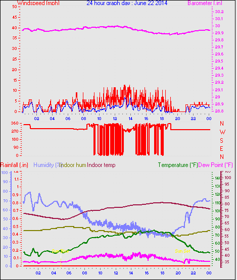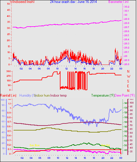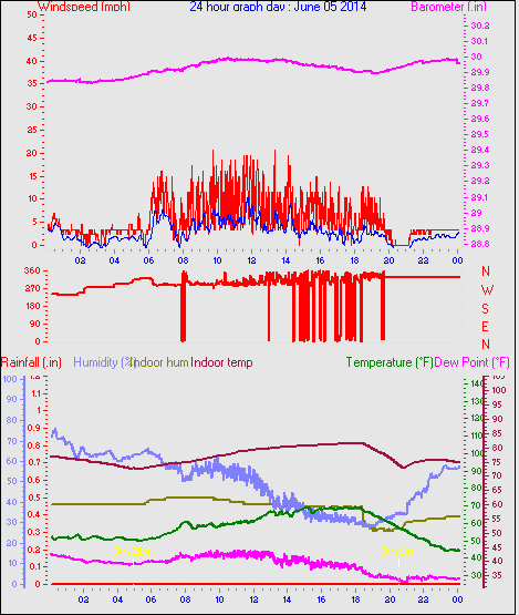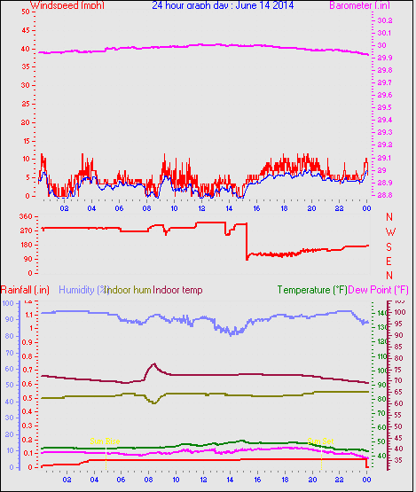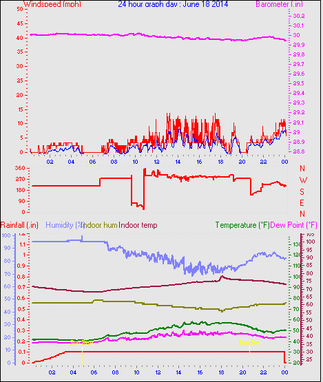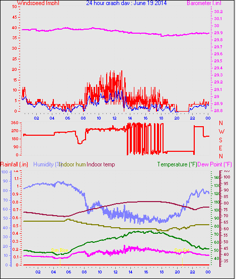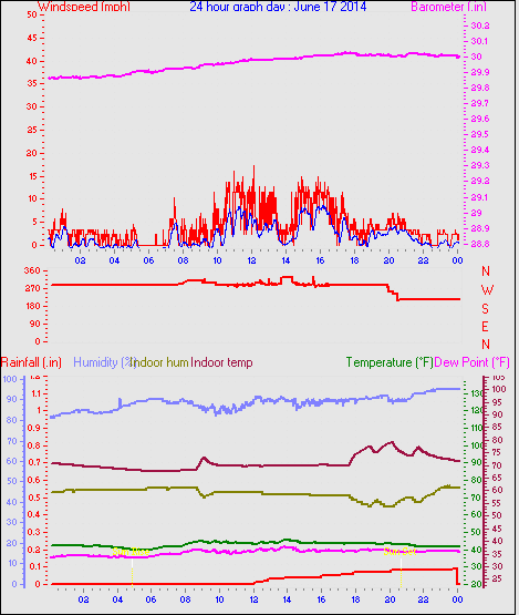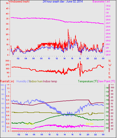 Maximum windspeed = 18.4 mph from 180°( S ) on day 02 at time 14:56