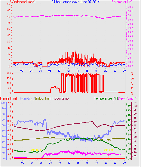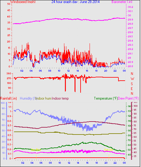 Maximum windspeed = 13.8 mph on day 28 at time 03:21