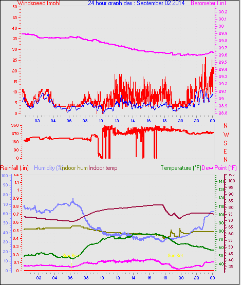 Minimum pressure = 29.592 in. on day 02 at time 22:03