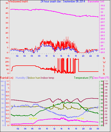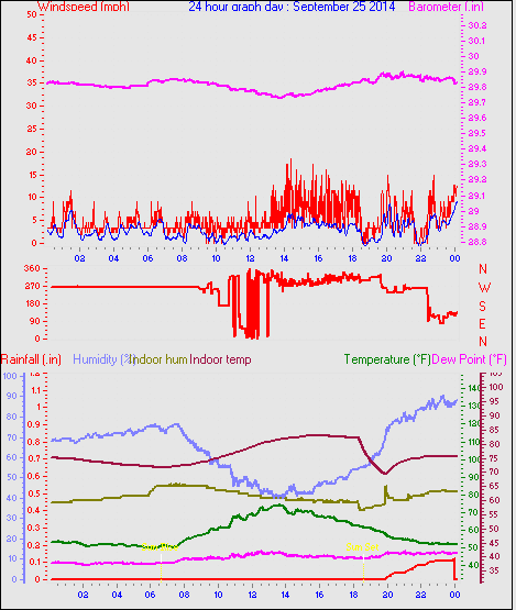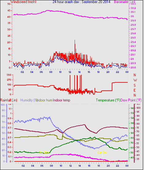 Maximum windspeed = 18.4 mph on day 28 at time 14:16