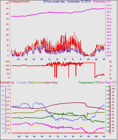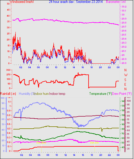 Maximum windspeed = 21.9 mph from 270°( W ) on day 30 at time 13:09