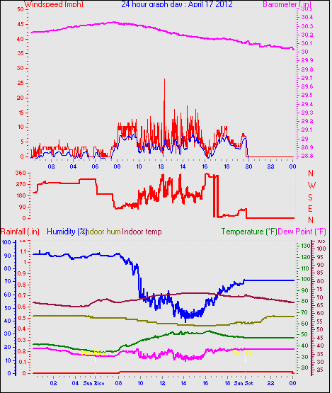 Maximum windspeed = 17.3 mph on day 30 at time 10:16