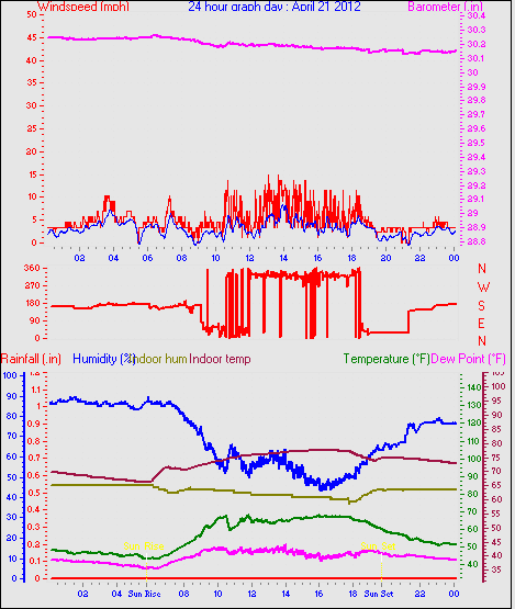 Maximum windspeed = 21.9 mph from 158°(SSE) on day 24 at time 19:38