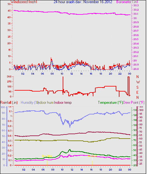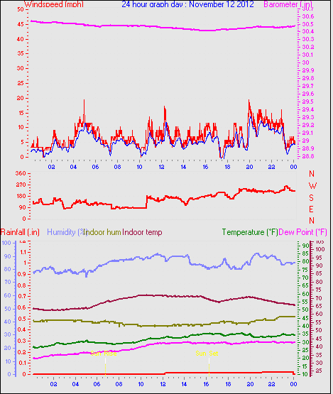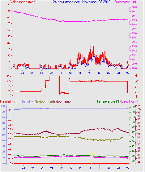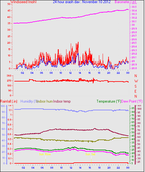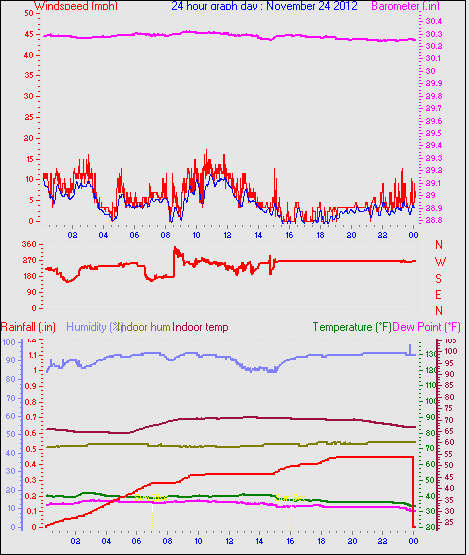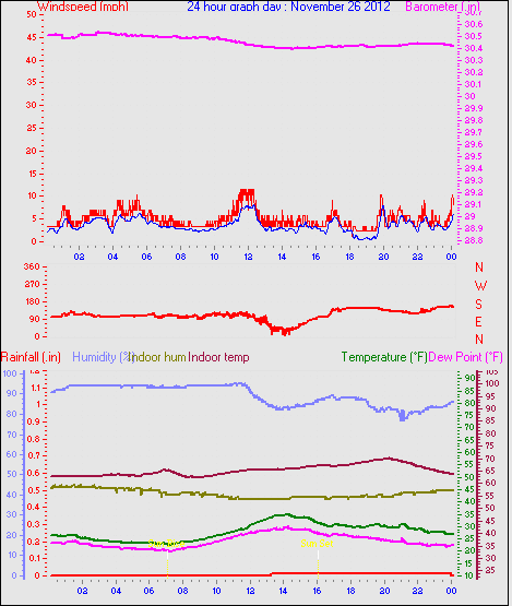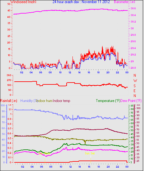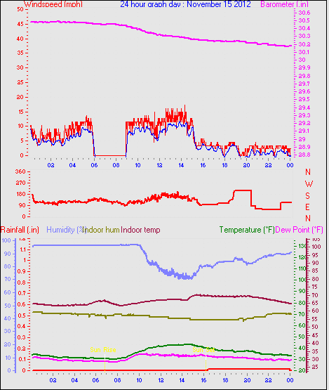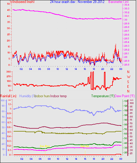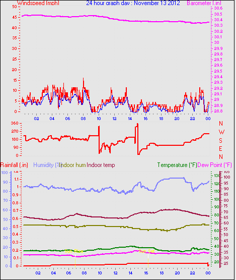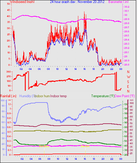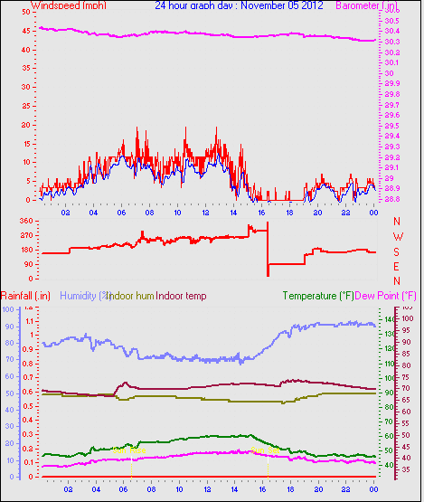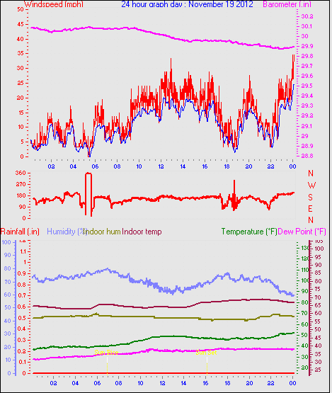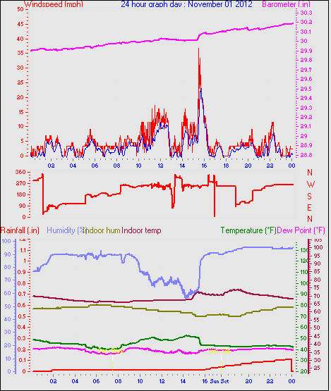Maximum windspeed = 23.0 mph on day 30 at time 04:26